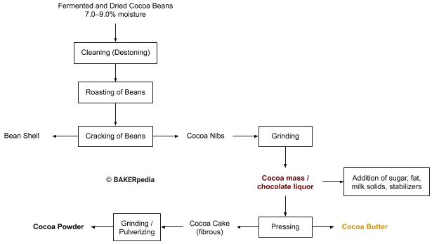It is produced according to the following cocoa processing diagram: