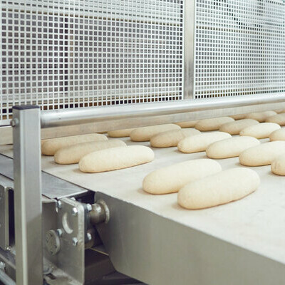 Conveyorized ovens have found extensive use in the production of hamburger buns and rolls. Manufacturing lines dedicated to buns usually have this type of oven installed and, depending on product size and scaling weight, can produce 50,000 to 90,000 buns per hour. Residence times for bun production in the proofer and oven usually are 60 and 12 minutes, respectively.