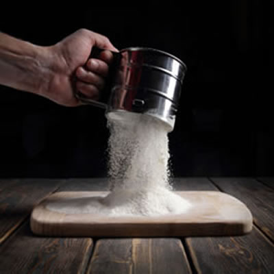 Flour is a fine powder made by grinding wheat kernels. It is the main component of foods such as bread, crackers, pasta, tortillas, cakes, cookies and pastries.