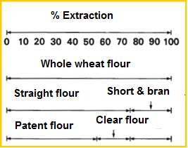 • Straight grade flour = patent flour (highly refined flour) + clear flour (lower grade flour with more ash, bran and aleurone)