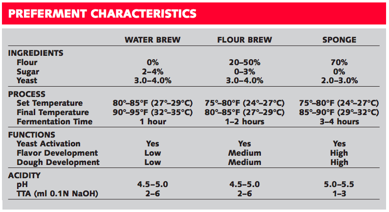 Preferment is the general term for the sponge or brew step that is used at the start of many bread making processes. There are three basic types of preferments made with commercial bakers yeast that are most used by industrial bakers: